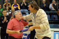 20:37 | No existen dudas que fue una noche redonda. No solamente por la victoria frente a Libertad de Sunchales, sino porque la emoción y el espectáculo, sumado al acompañamiento de la gente, le otorgaron un aditivo especial al debut de Sionista de local en la LNB 2011/12. En nombre de la institución Benjamín Svetliza le entregó una plaqueta de reconocimiento a Diego Osella.