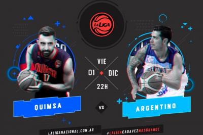Desde las 22.00 horas, Quimsa se medirá con Argentino en el Estadio Ciudad, por la tercera jornada de La Liga. Torres debutará en el local, que no contará con Massey por lesión. Cequeira es baja en la visita. Transmite La Liga Contenidos.