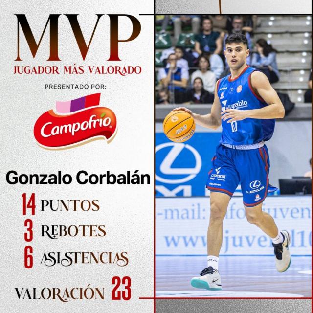 Silbo San Pablo Burgos (12-1) ganó sin problemas como visitante. Se impuso ante Naturavia Morón 89 - 66 con otro buen aporte de Gonzalo Corbalán.El base-escolta aplicó 14 pts (5-7t2, 4-5t1), 3 rebotes y 6 asistencias en 27 minutos. Burgos contó con una fantástica primera parte ofensiva (51 - 39) para empezar a dominar el partido. Mejoró defensivamente y cerró con todas las luces en el último periodo (18 - 9).